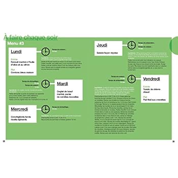 J'ai commencé à préparer tous mes repas le dimanche depuis plusieurs semaines, sans aucun livre de recettes. Je me contentais de réaliser les mêmes recettes. Si vous n'avez jamais essayé le "batch cooking", je ne peux que vous encourager à le faire. C'est tellement agréable de rentrer chez soi en sachant à l'avance ce que l'on va manger et avec le soulagement de savoir que tout est prêt. J'ai découvert ce livre par hasard et j'ai décidé d'essayer une méthode plus organisée. Il y a 4 menus type par saison, donc 16 au total,ce qui évitera de s'ennuyer. Les 2 heures pour réaliser les plats sont théoriques, je dirai que cela dépend de votre vélocité à couper les légumes ! Mais cela n'est pas gênant et l'enchainement des tâches fait que cela est même agréable. Un bon moment passé dans la cuisine en conclusion et un livre qui vaut son prix. Si cet avis vous a été utile, pouvez-vous l'indiquer ? Merci